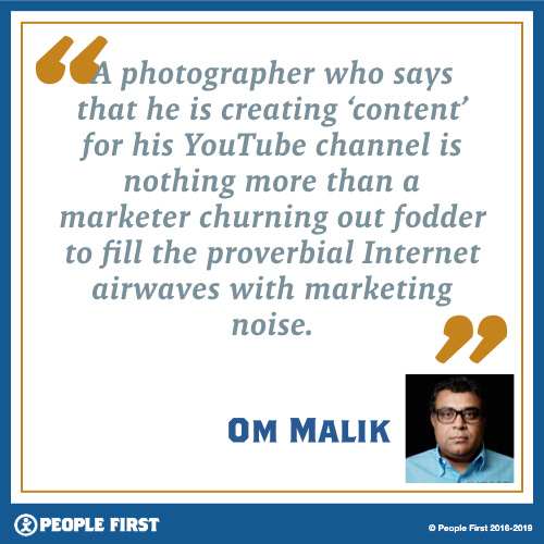 As long as ‘we the creators’ fall into the trap of using ‘their’ words to describe our work, our soul, our passion, our beliefs as ‘content’, then our work will continue to be viewed as ’free - to - cheap - to - low - cost, homogenized, non differentiated, interchangeable fodder’.